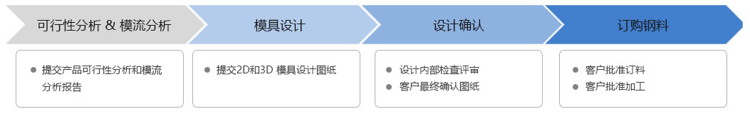 我们采用国际标准如DME, HASCO, RABOURDIN, DAIDO 或客户特定标准,保证每一套模具都能在指定国家或地区精准的运作。客户提供DXF, DWG, PRT, SAT, IGES, STEP, X-T, CATPart等格式图纸后,我们的精英模具设计师能将产品图导入模具设计和CNC加工,并利用专业的CAD/CAM/CAE软件实现无缝连接,从而获得最高精度和效率的加工。